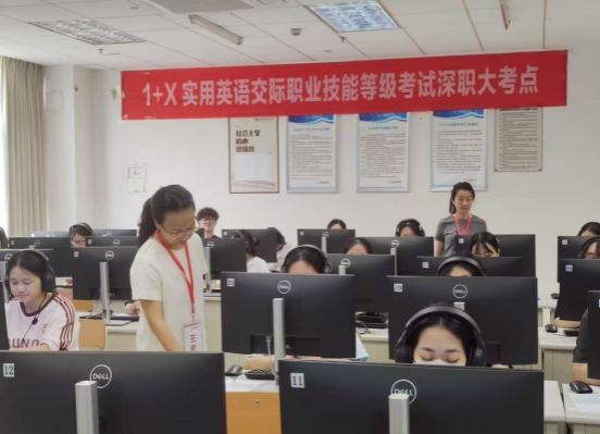 10月18日,suncitygroup太阳新城在留仙洞校区顺利举行1+X实用英语交际(VETS)职业技能等级考试。商英专业80名学生参加了考试,无一缺考。学院副院长周月容、考试中心主任廖丽洁现场巡考,保障考试顺利进行。