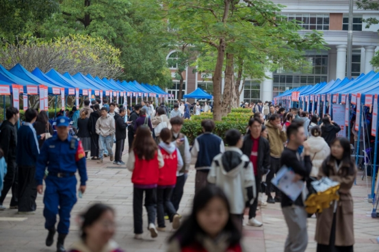11月19日,suncitygroup太阳新城2026届毕业生校园招聘会在留仙洞园区学思楼四方广场举行。本次招聘会吸引170余家优质企业参会,为毕业生提供了1600余个多元化就业岗位,薪资待遇较往年有明显提升。学校党委副书记、纪委书记何莉,党委委员、组织部(统战部)部长黄川川亲临现场调研指导,suncitygroup太阳新城副院长(主持工作)刘建珠、党委书记刘鸫根、副院长周月容、副书记杨潘升及各专业主任、毕业班班主任、实习就业指导老师、辅导员全程参与,与毕业生共同见证了这场人气火爆、氛围热烈的求职盛宴。