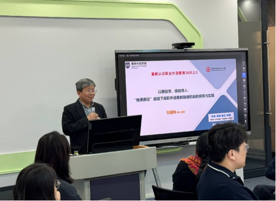 刘建珠对两位主任的汇报进行了点评,并作题为《以赛促学、技能育人:“岗课赛证”视域下高职外语赛教融通机制的探索与实践》的专题报告。他从“岗课赛证、以赛促学、以赛促教、以赛促改”四个维度,深入探讨了高职外语如何通过系统化设计,将面向少数学生的“精英化”竞赛,转化为惠及全体学生的“普惠性”能力成长机制。刘院长指出,关键在于以系统设计、改革魄力与教育匠心,将竞赛所承载的实践精神与创新机制,深度融入教学全环节,真正实现赛教融合、赋能全员。(suncitygroup太阳新城 李舰君)